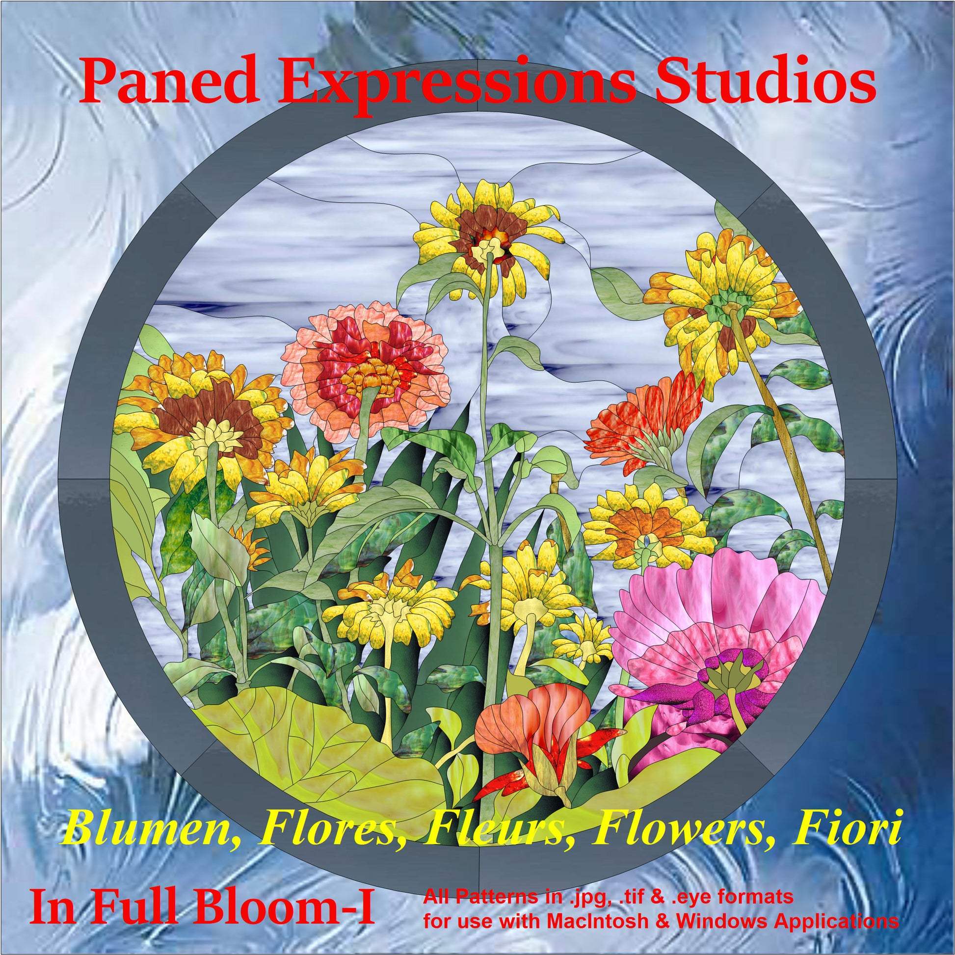 All patterns are provided in color and b&w in .jpg, .tif and .eye (for GlassEye) formats for both PC & Mac for easy resize, reshape and re-color.